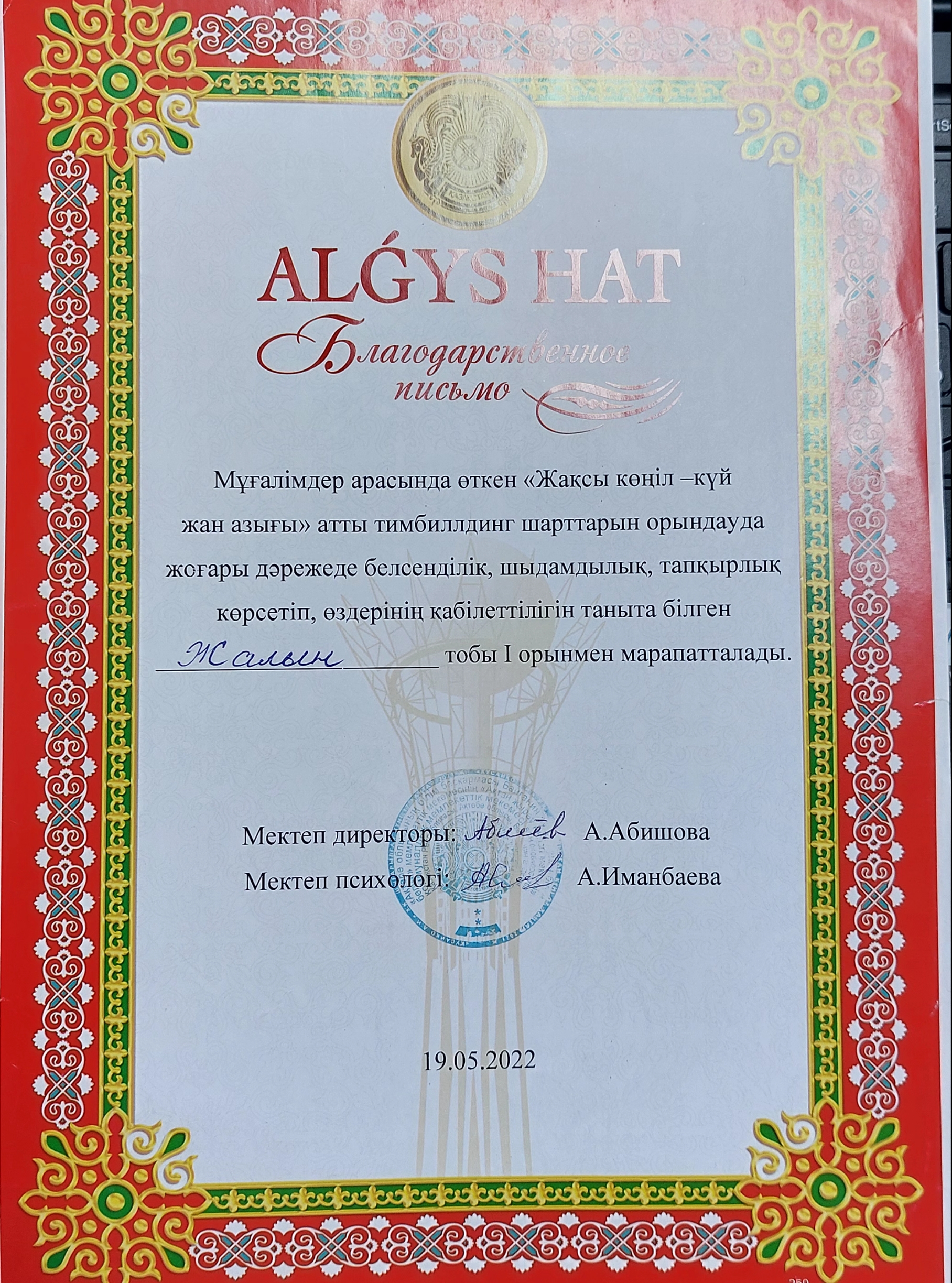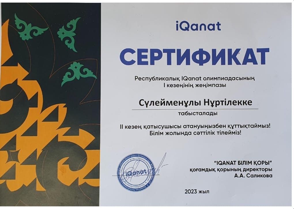 | 1 | 2018-2019 оқушы жетістігі | |